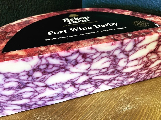 ポートワイン・ダービー イギリス/牛乳製/セミハードタイプ ポルトガルの甘口ワイン『ポートワイン』を練りこんだチェダーチーズ。 ブルーベリー果汁も加えられており、ポートワインの深みのある香りとフルーティーな風味がチェダーの旨みと見事にマッチしています。 甘いくフルーティーな香りとミルクの旨味が余韻となり、デザート感覚で楽しめます。 紅茶やハーブティー、ワインなどのお酒にも幅広く合わせられます。 ※手作業でカットを行うため、重量が多少オーバーすることがございます。 ※100g単位での販売ですが、個数を増やしてご購入いただくと合計数量の塊でお届けいたします。100gのカットを複数購入したい場合はその旨を備考欄にご記入ください。 ※賞味期限は到着後15~20日程度です。