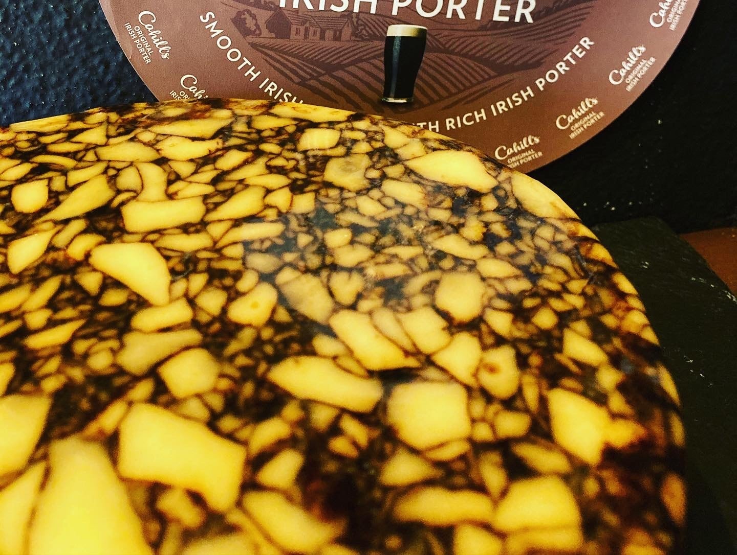 アイルランド名産の黒ビール『ポーター』の麦芽を練り込んだ、大理石模様が印象的なチェダーチーズ。