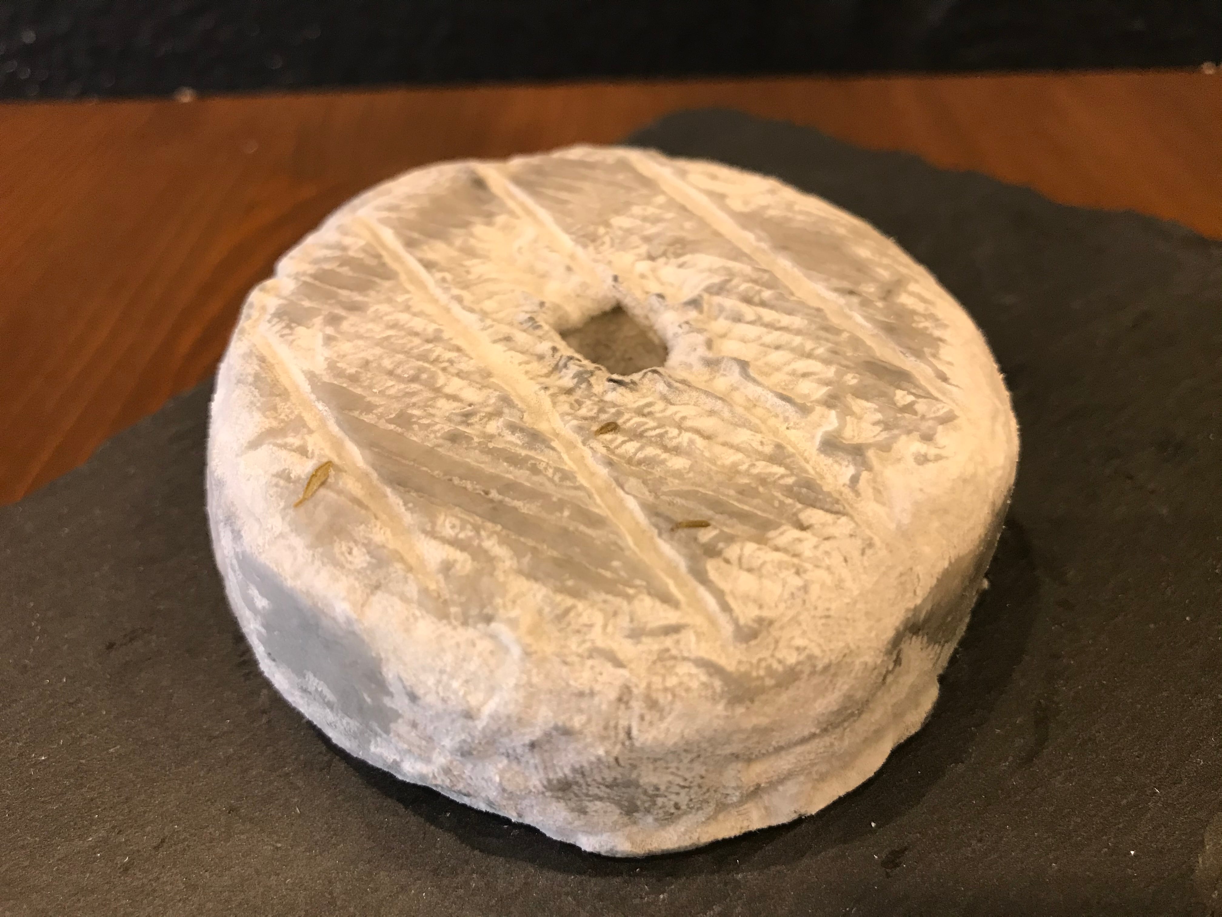 ドーナツ型で木炭の粉をまぶしたソフトチーズ。