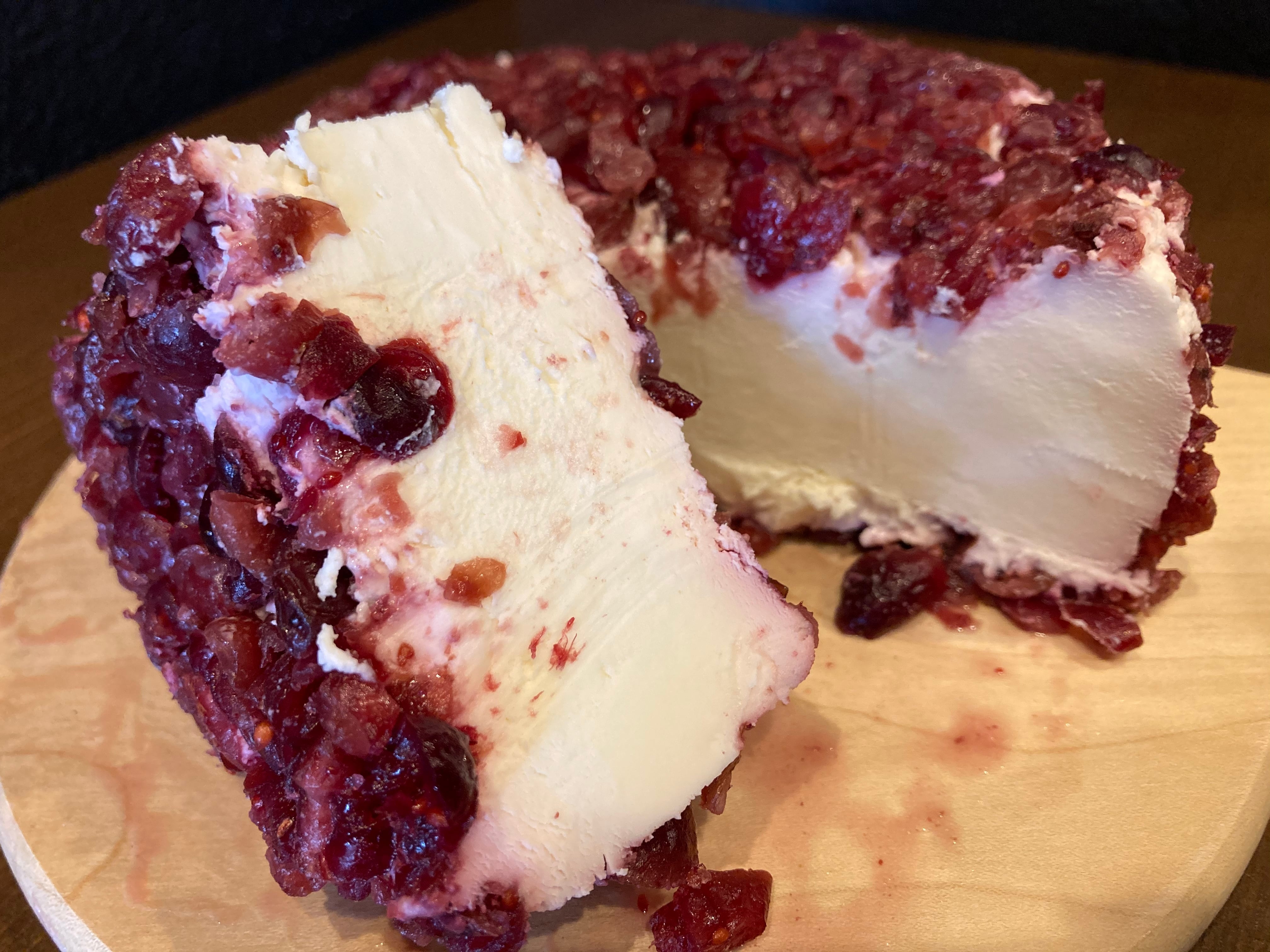 ブルゴーニュ地方で作られるトリプルクリーム(脂肪分72%)のフレッシュチーズをジューシーなセミドライクランベリーで包み込んだデザートタイプ。
