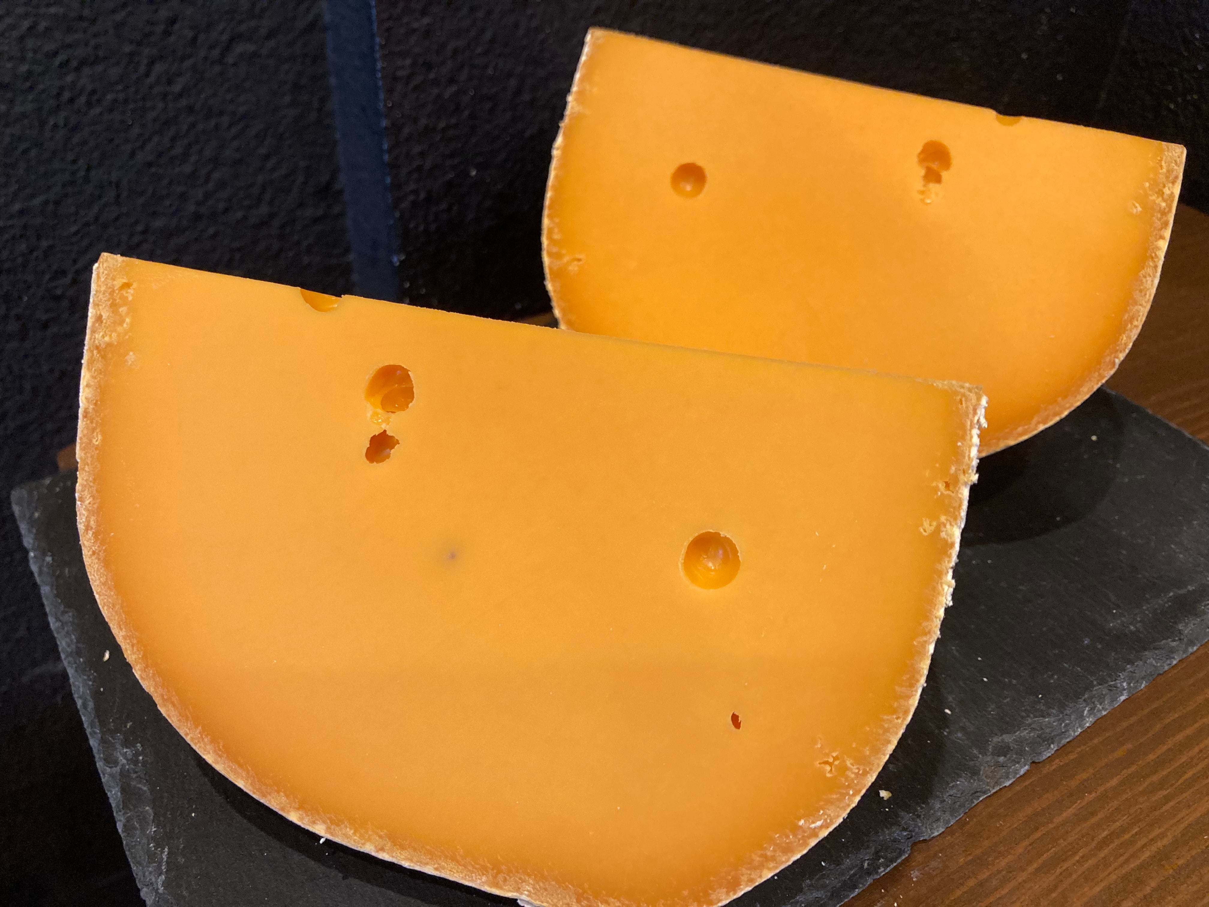 名称の語源はフランス語の「半分柔らかい=ミ・モレ」からきていますが、「ジュンヌ」は熟成期間2〜6ケ月の若めのものを指して呼ばれ、しっとりとした生地はミルクの甘味が充分に味わえます。
